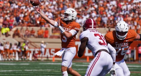 This weekend brings us a rematch of one of the most exciting games on the college football schedule as SEC contender and playoff favorite Alabama welcomes future conference rival Texas in a battle of top-15 teams on Saturday. A year ago, the Crimson Tide needed every second to eek out a 1-point victory over the Longhorns on the Forty Acres, relying on some late-game heroics from quarterback Bryce Young, whose scrambling helped put Alabama in position to kick the game-winning field goal. This time around, we should see more of Texas quarterback Quinn Ewers, who was 9 of 12 with over 100 yards passing before leaving last year's game with a shoulder injury. Alabama is expected to start Jalen Milroe again at quarterback after he accounted for five total touchdowns in last week's win over MTSU.